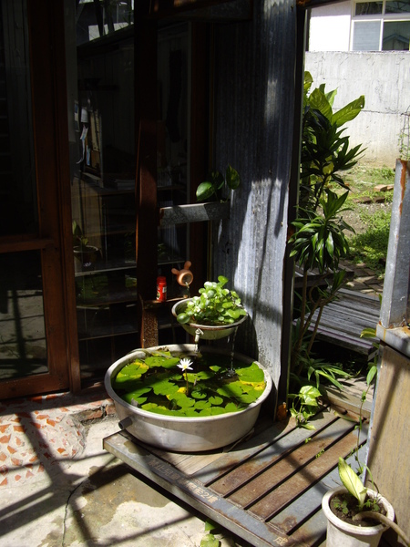 一進到門口,右手邊馬上可以看到夫妻倆運用巧思所打造的小生態池。